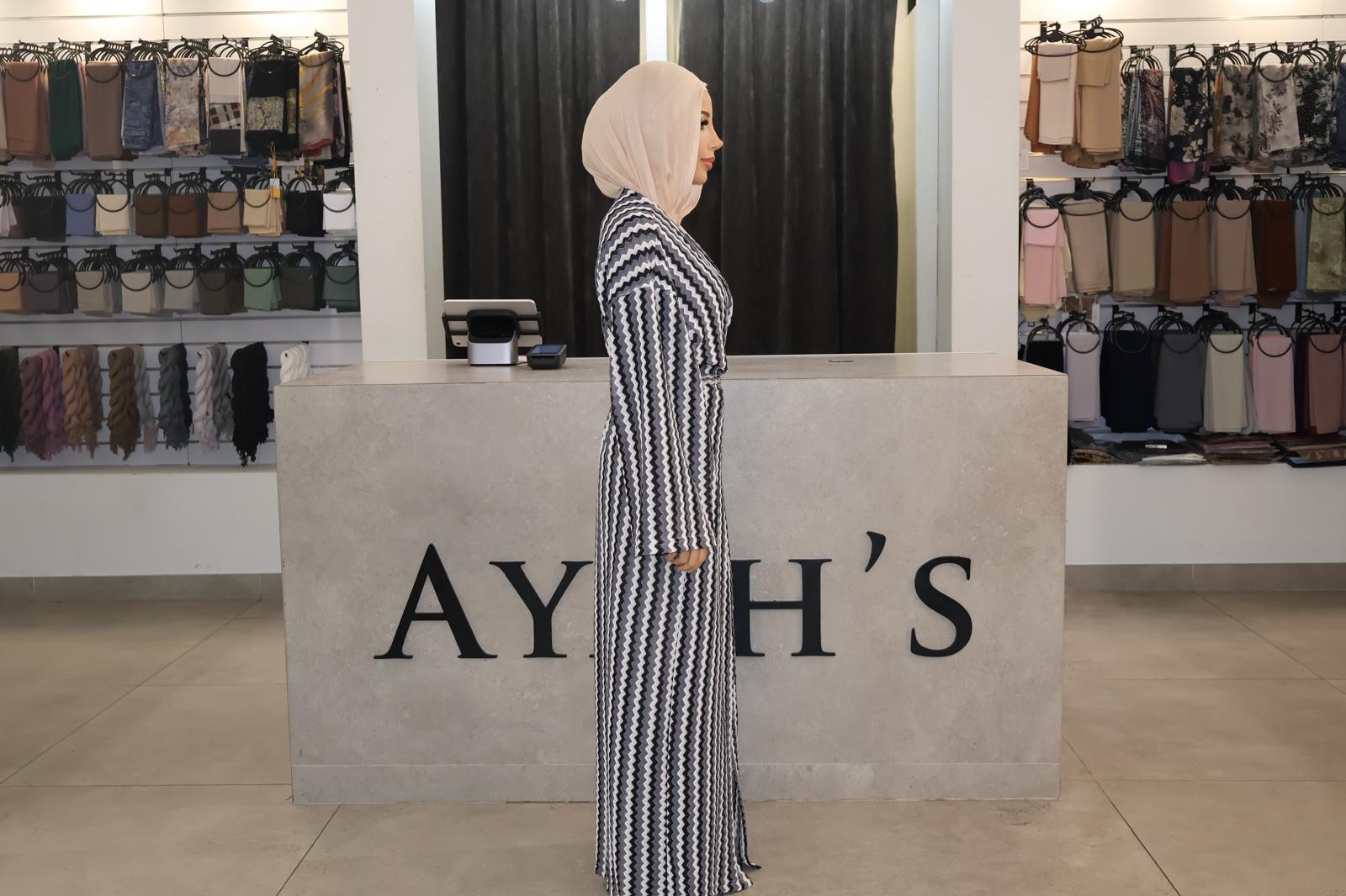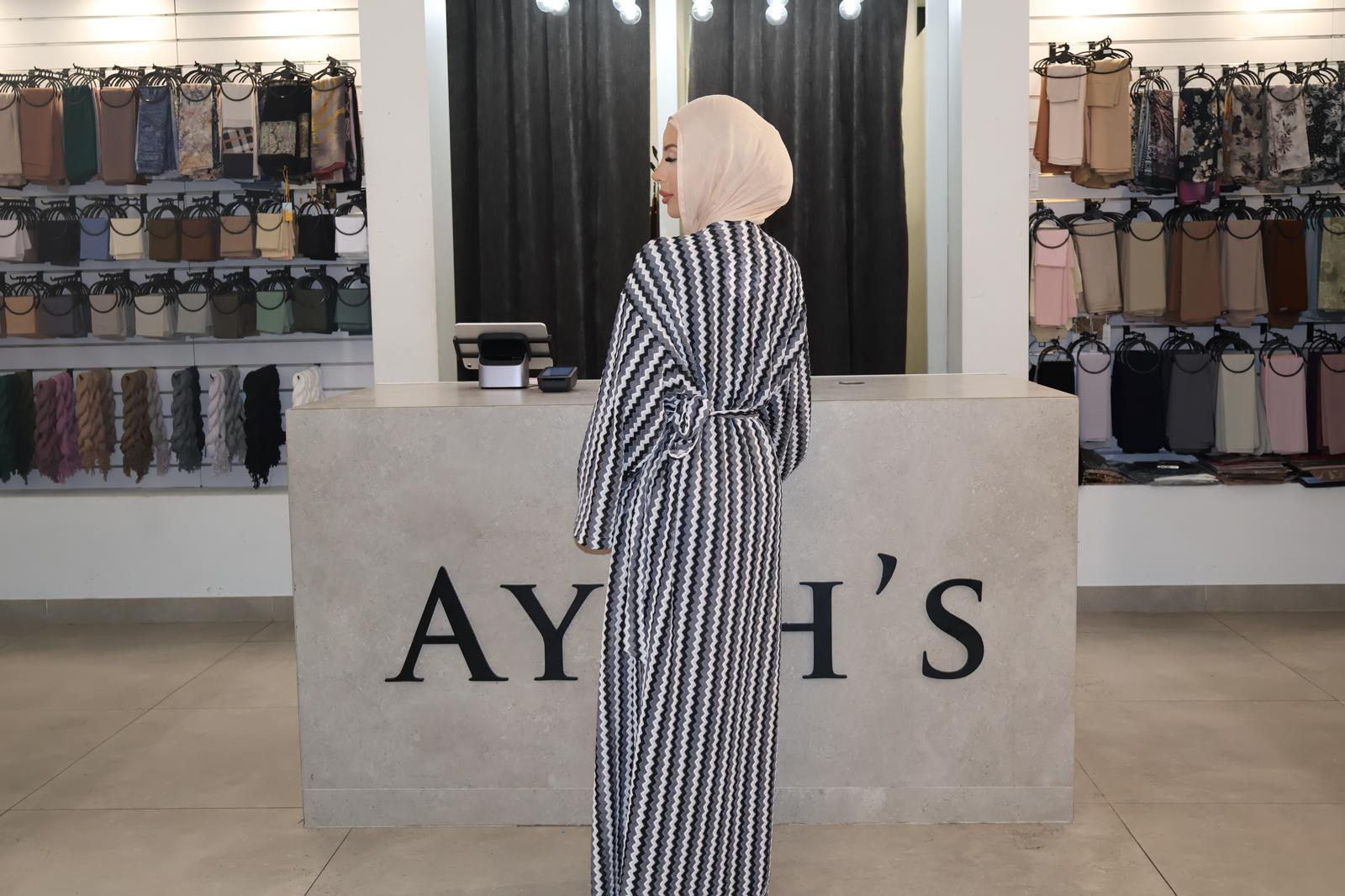 The Emma cape features a striking zigzag pattern in black, grey, and white, offering a sophisticated aesthetic. Its design ensures versatility, allowing it to complement various outfits while providing warmth and comfort. Made from quality materials, this cape serves as a functional and stylish addition to your wardrobe.
