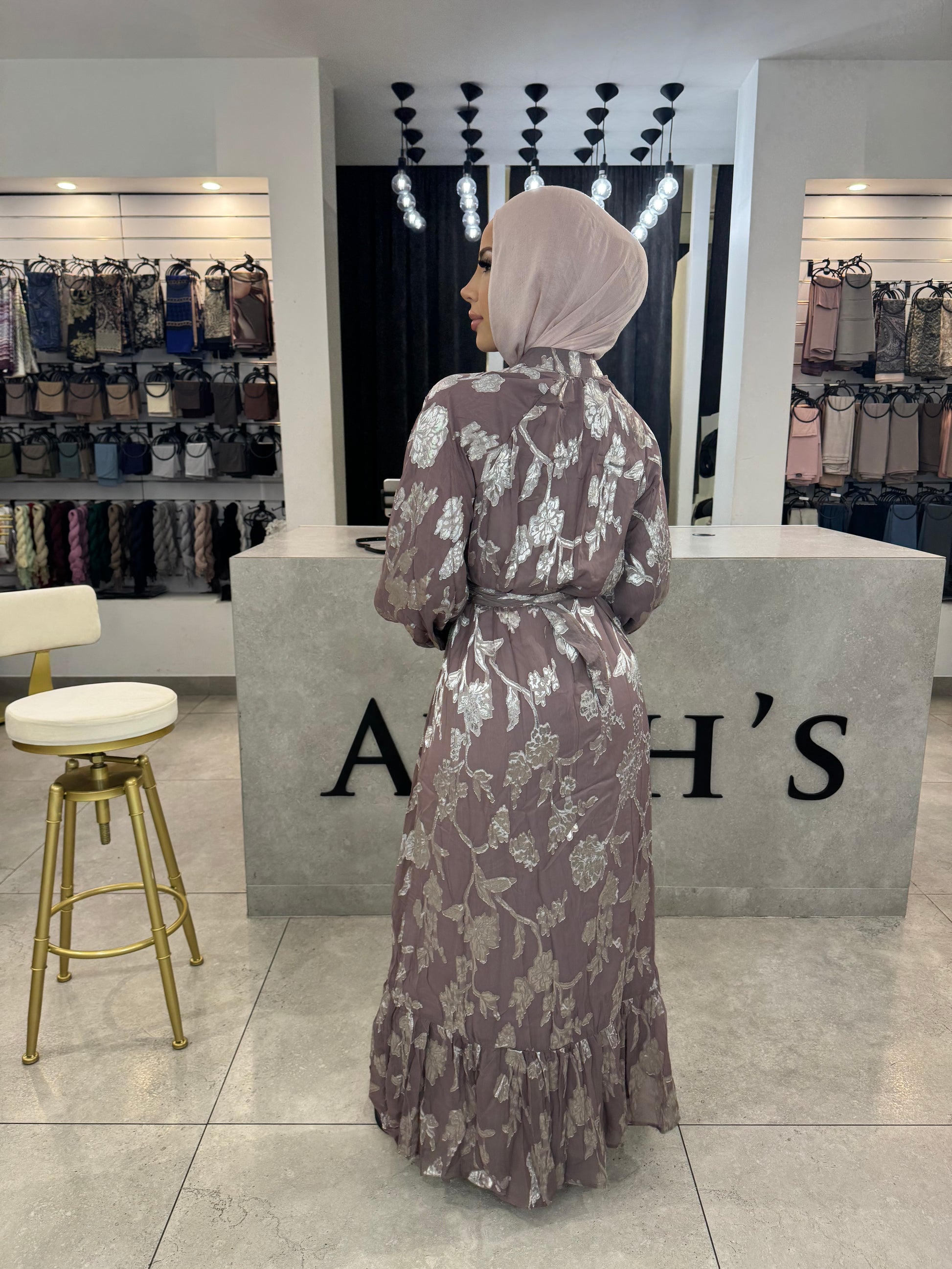 The Loujane dress offers a sophisticated look with its satin print on chiffon design. Perfect for any occasion, this dress exudes elegance and style.