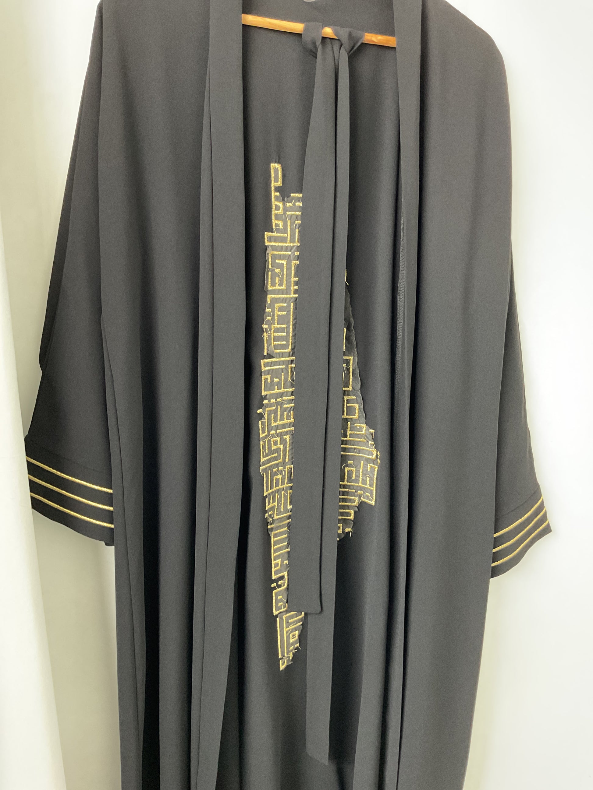 The Palestine Gold Back Cape features a striking white and black design, accentuated by the Palestine gold flag prominently displayed on the back and luxurious gold trim along the sleeves. This cape not only serves as a symbol of pride but also enhances visibility and aesthetic appeal, making it suitable for various formal occasions.