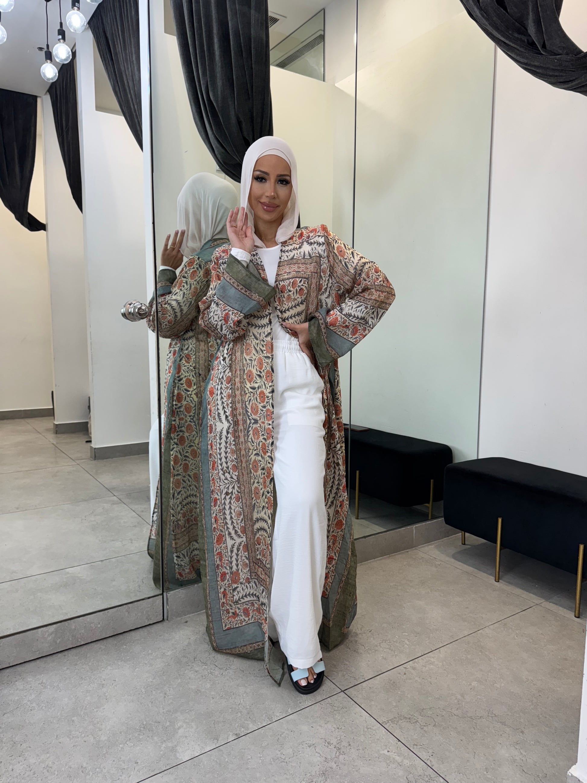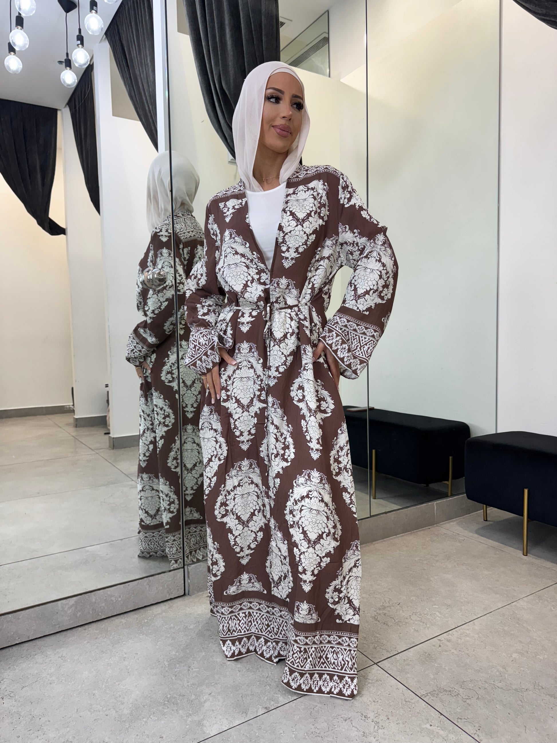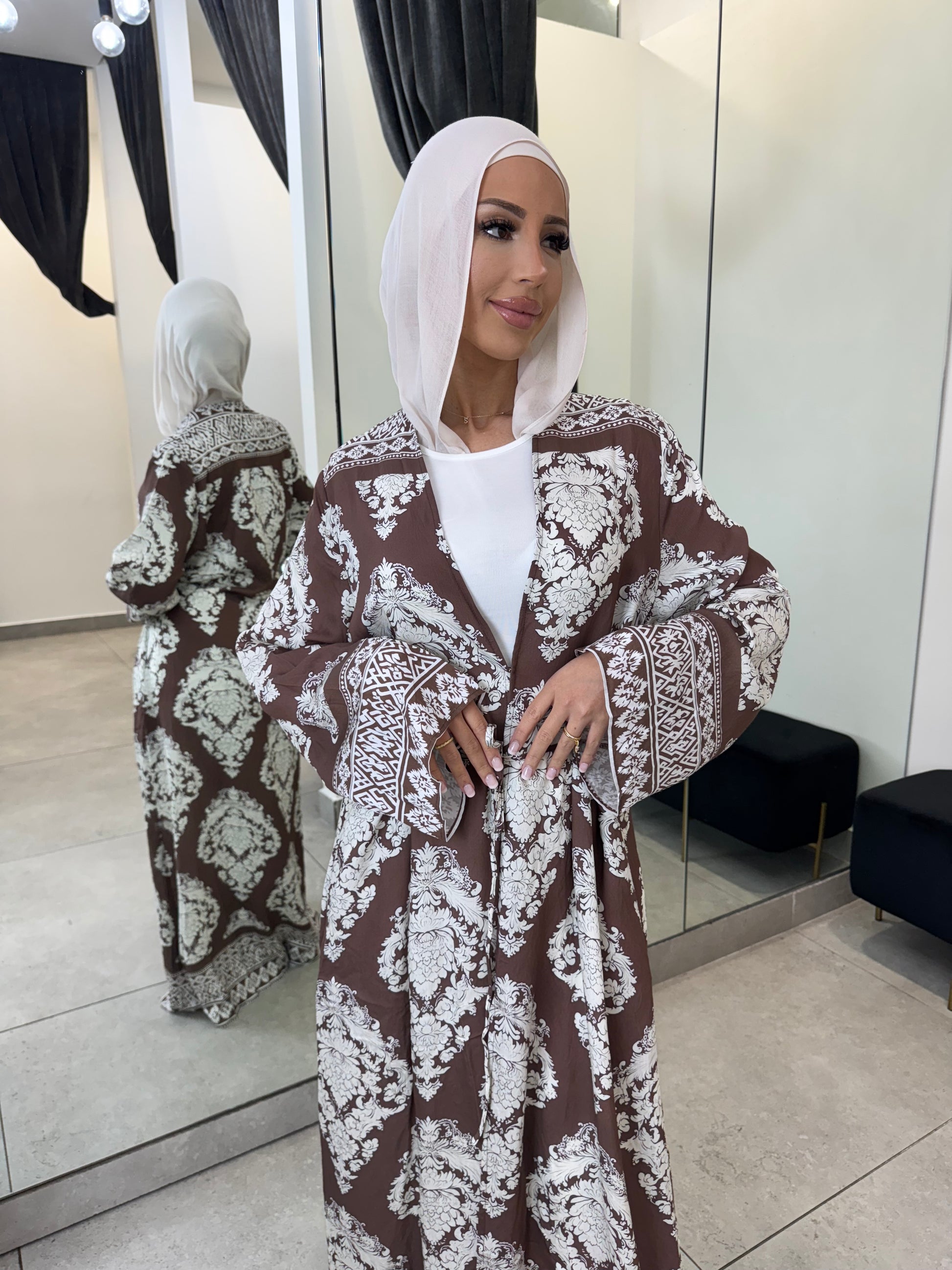 This Printed kimo features a sleek design with a white and grey print. Made from high-quality materials, it offers comfort and style. Elevate your wardrobe with this stylish kimo.