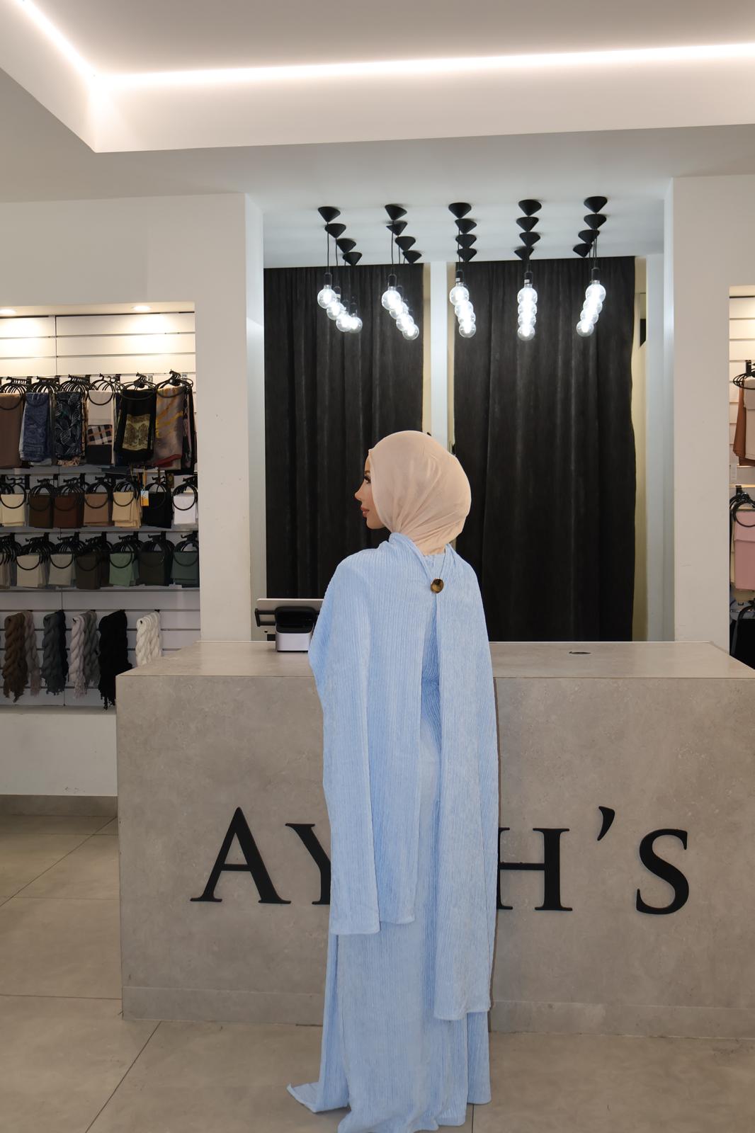 The Zara dress combines a soft fabric construction with a front waist drop secured by a gold buckle, providing both comfort and style. Its elegant shawl around the neck enhances the garment's versatility, making it appropriate for formal and semi-formal events. This design offers a refined aesthetic without compromising comfort.